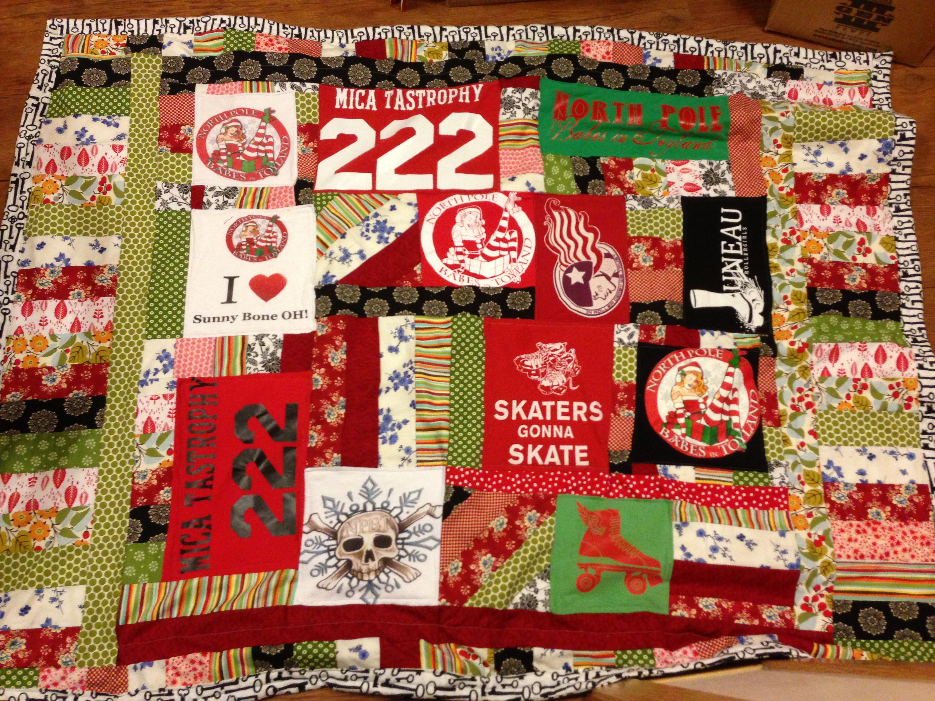 And there you have it! A little wonky, a little crooked, and a whole lotta cool and snuggly. …And believe me, I still have TONS of derby shirts left over…. Not to mention a ton of patches on my skate bag and stickers on my helmet.