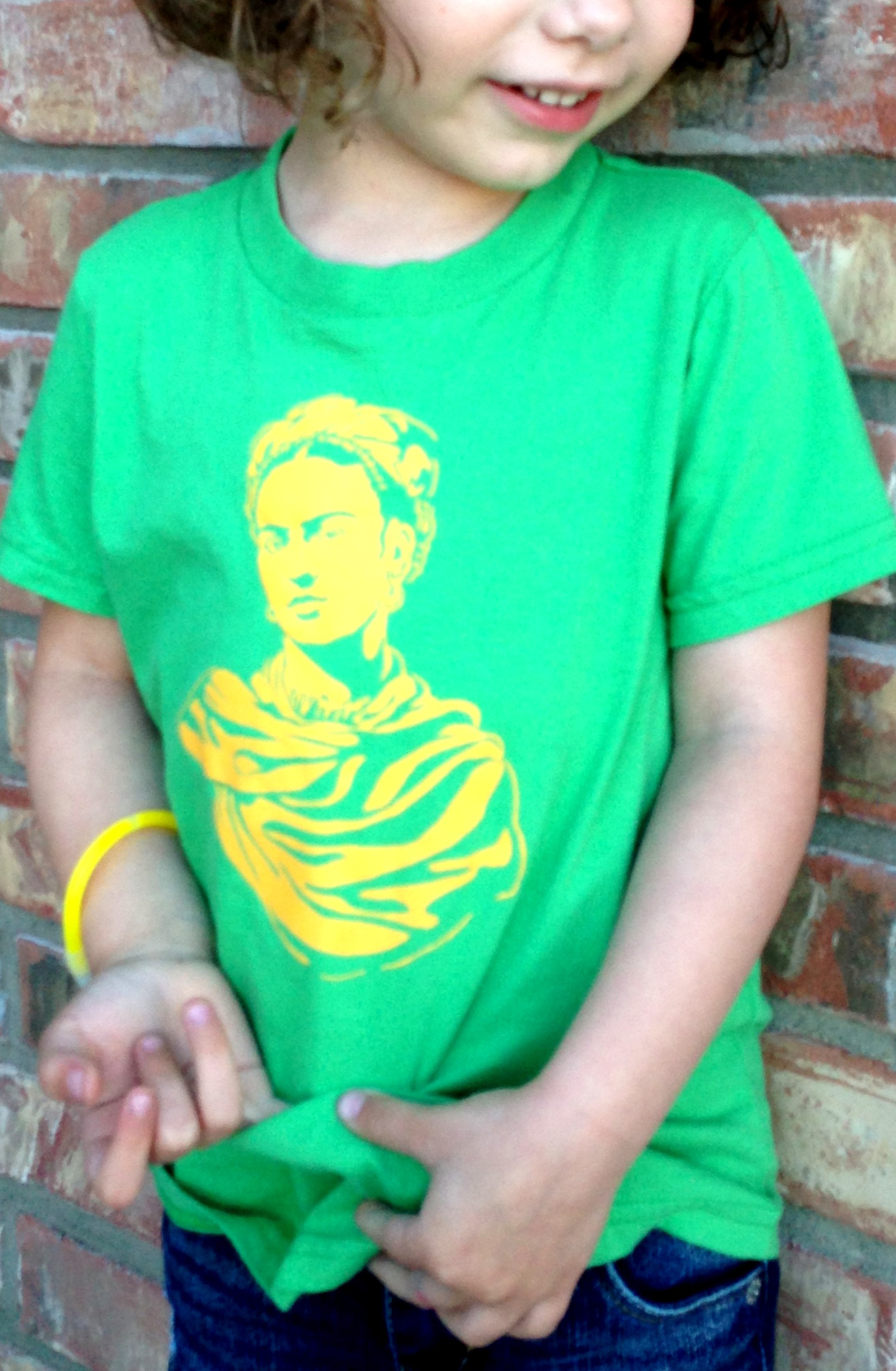 It was like seeing an old friend!  Involved with everyday things as well as discovering our daughter’s artistic side, I  had forgotten all about Frida.  Our daughter was excited to know who it was on this new shirt.  I told her excitedly, “It’s an ARTIST!”  She said, “a GIRL one like me and you?” and her excitement was clear:  there was another girl, like me and like her, that love love LOVED to draw and paint.