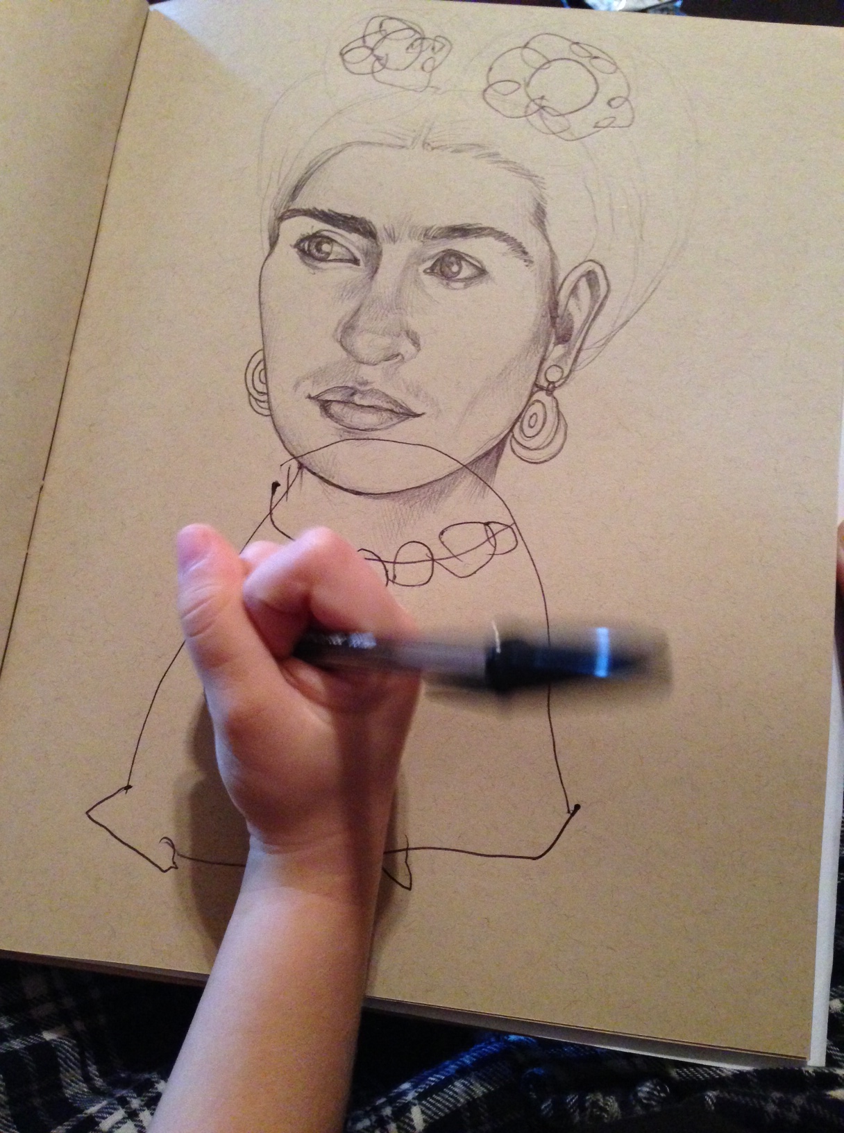 Thank you, thank you, thank you! What a fun blog to pop into my inbox while I am just reading my mail. I love your daughter’s enthusiasm, and also how some people (Frida in this case) weave their way into our lives not of our own doing. I just discovered your work on Society 6 yesterday and while reading was hoping you would put this drawing there, then I got to the bottom, and voila, wish granted!