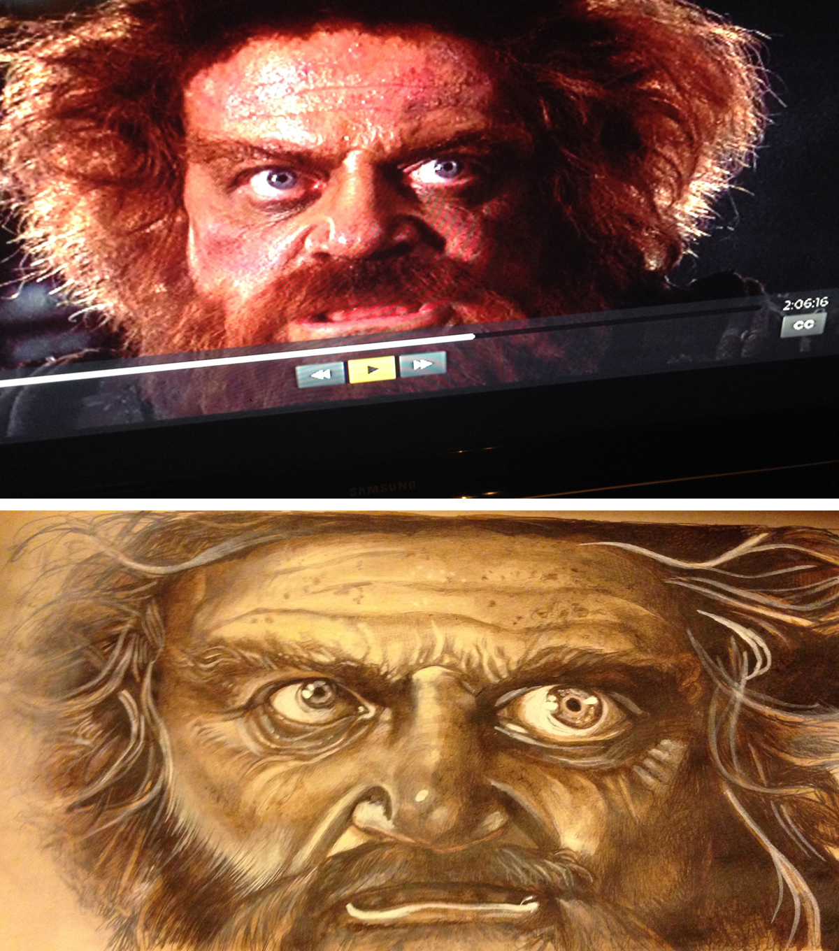 Fast-forward (with only a few years’ delay) to the amazing awesomeness of blu-ray, streaming video, and the internet! Looking for an obscure image to use as a reference to draw from? Easy, just Google it, and I’ll bet it’s there, along with a million other obscure things you never asked for. Or you want to draw a specific scene from a movie? Easy: if you can’t find the image online already, just push pause and take a quick picture of it with your phone to draw from later. Boom.