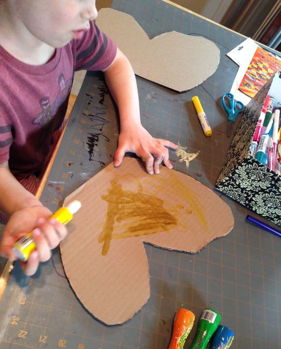 If I were to make my dream fairy wings, they would NOT be made from cardboard.  But cardboard is what we had on a rainy stay-at-home day when I didn’t feel like leaving the house, and that’s what we used.  And you know what?  She didn’t mind at all.