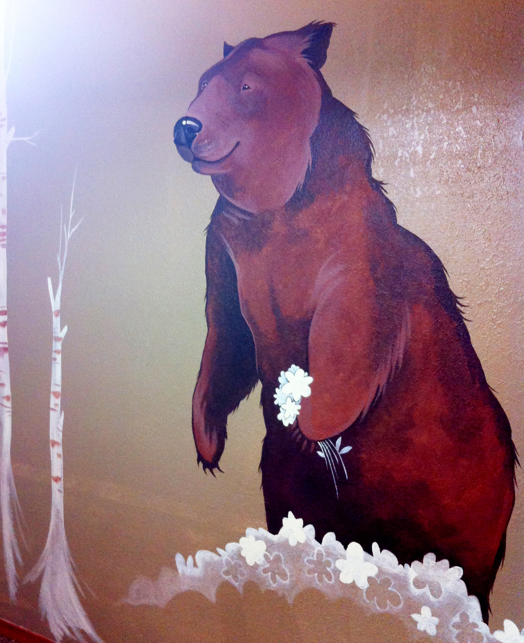 Her husband worked with mine in an Army medevac unit when we were stationed in Alaska, and I once painted a bear and birch tree mural on her niece’s nursery walls…