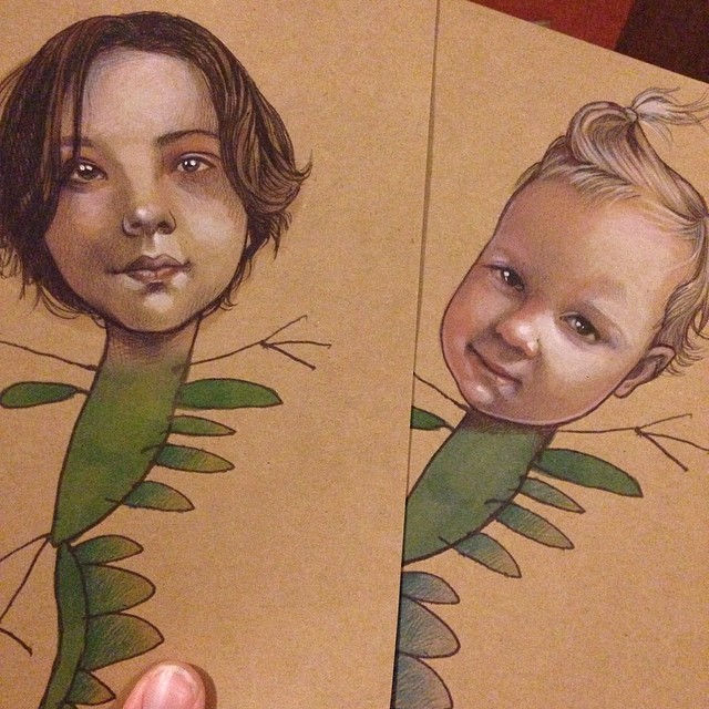 While all of that was going on, I worked on backer rewards.  In some of the higher tiers, rewards involved portraits on dinosaur bodies…and you all came up with some beautiful faces for me to draw!