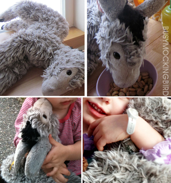 And then, just before Myla’s first birthday, mom sent a package to us in Alaska. It was my DONKEY!! And he was FINE! He had somehow survived the rodent apocalypse unscathed! Mom had washed him and sent him to us when they cleaned out their shed. I happily gave my beloved Donkey to Myla, who I assumed would simply cuddle him for a bit and toss him aside. But for some reason, out of ALL the dolls that have ever come and gone, THIS one stuck.