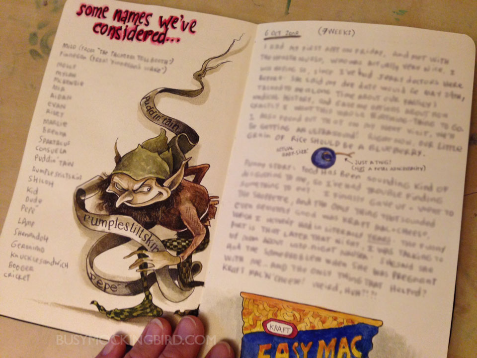 Years later, when I was pregnant, I constantly heard “enjoy every moment, it goes so quickly!”  So since I am quite a literal person, I took that to heart, and then always felt this intensely insane NEED to document EVERYTHING.  When I was pregnant with Myla, I kept a couple of sketch journals throughout the whole thing, which I somehow continued to keep up all the way until she was about two, (when I became too busy and finally just let it go).