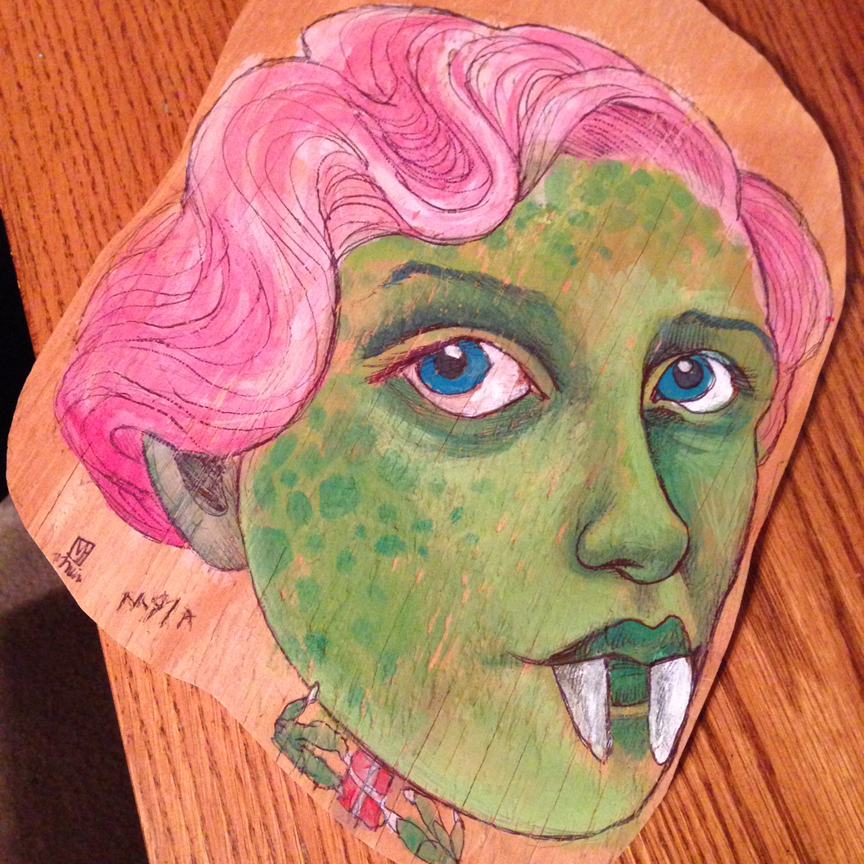 I had an extra piece of cut wood from an older project, and I sketched a face.