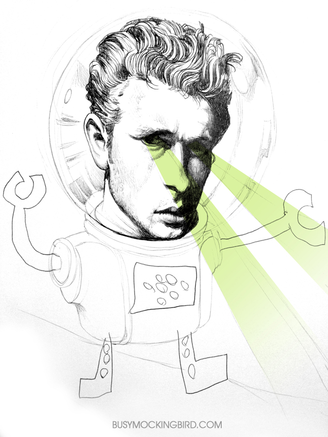 So recently, I got a new sketchbook, hoping to get some ideas out…and I tried again, this time with James Dean.  And it looked lame.  Because it wasn’t what was in my head.