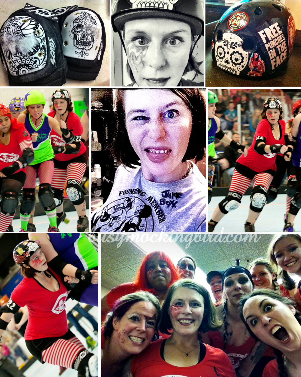 I played roller derby for a few years.  I wasn’t super great or anything, but it felt REALLY good to skate around and knock other girls down.  And when YOU got knocked down, you didn’t even mind.  It was worth it, as long as it was a good hit.   I sprained my collarbone and my jaw in derby, got countless fist-sized bruises, separated my fibula from my kneecap area, and twisted my ankle, and it was all worth it.  You could all hate each other, and then get on the track and still play a great bout, and hug each other afterward because of the general respect it takes just to get on the track.  I can’t explain how much I love derby.  (Sadly, I don’t play anymore, but I still love it.)