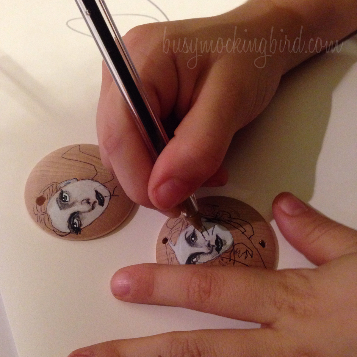 My mom & I sometimes swap art supplies.  Last time she visited, she brought these little wooden disks that I wasn’t sure what I’d do with…but I knew I WANTED THEM.