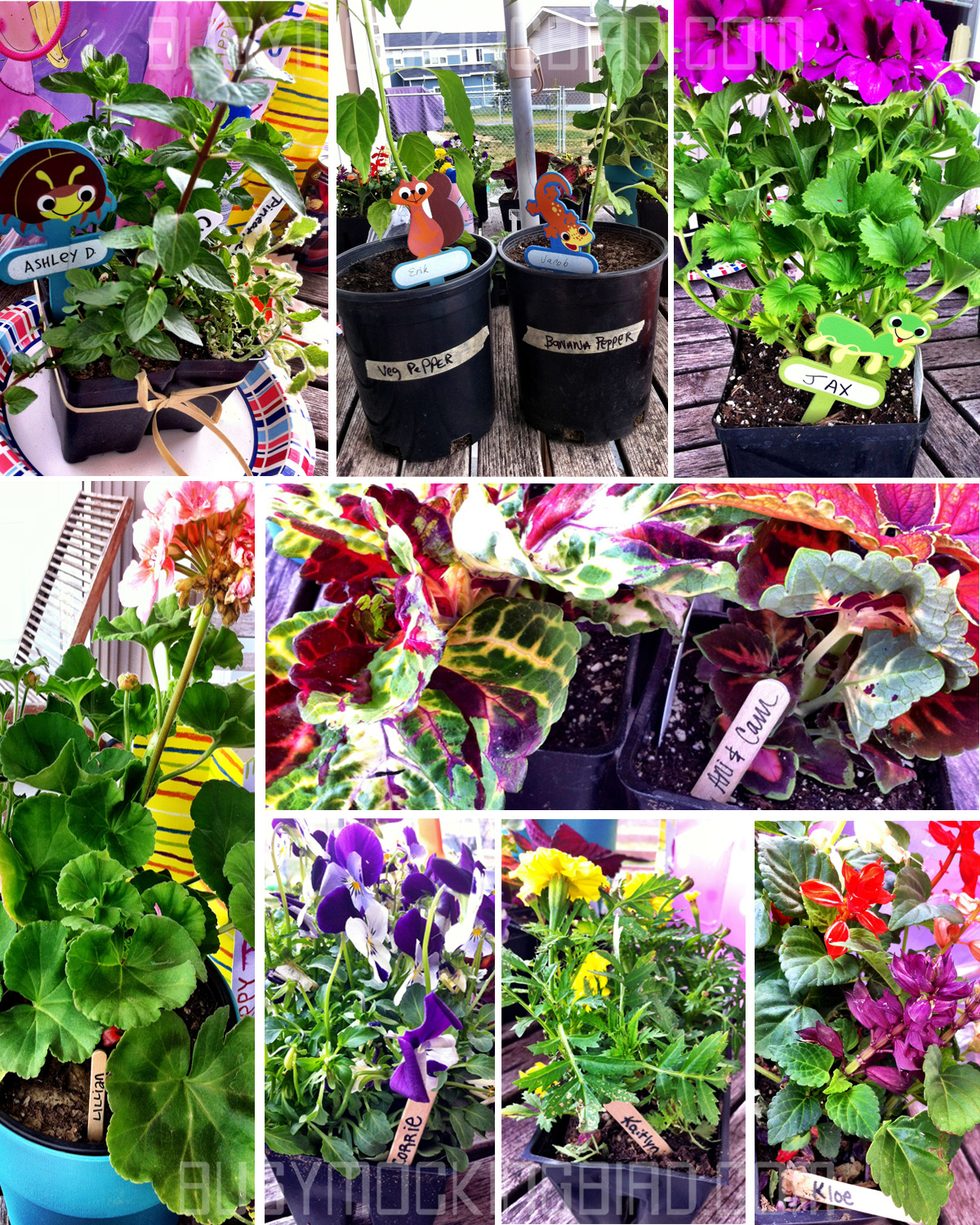 Later, after the party was over, I replanted the plants in the garden bed, using plastic spoons so they’d be waterproof, and put everyone’s name on again (okay I should’ve done that in the first place, but I didn’t think of it at the time).