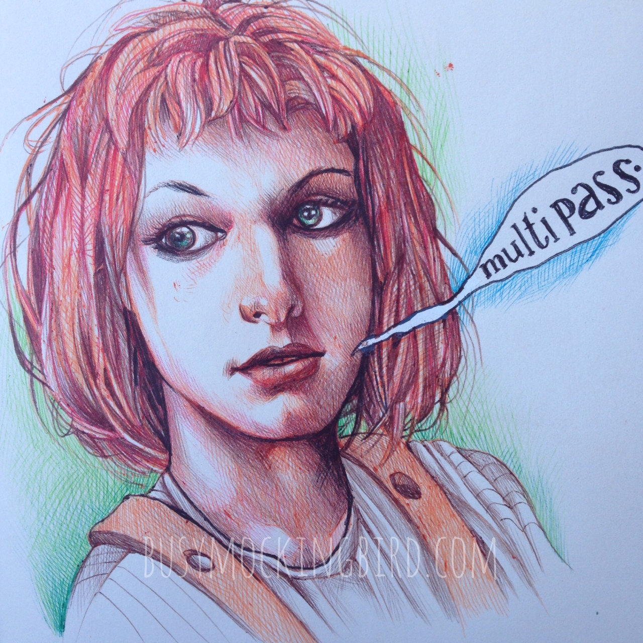 And the final doodle: Leeloo (Milla Jovovitch) from the movie the Fifth Element: