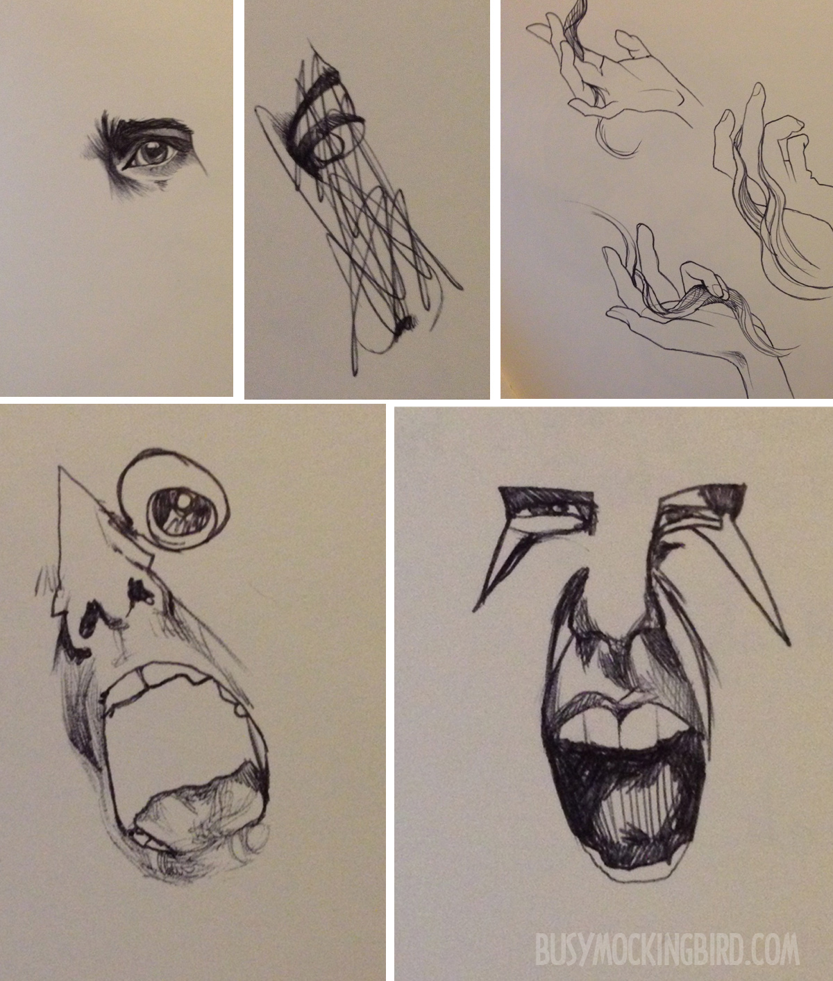 2. Keep bashing my head against that very same wall, in that very same spot. Photographers take TONS of bad shots before catching “the one shot” that works. Sometimes, trying, and trying, and trying again is a helpful way to get out of a rut. This requires lots of disposable supply stock, and patience. It will be frustrating. You will fill up many pages with many bad sketches. But one day, something halfway decent might come out, and you will be a little relieved.