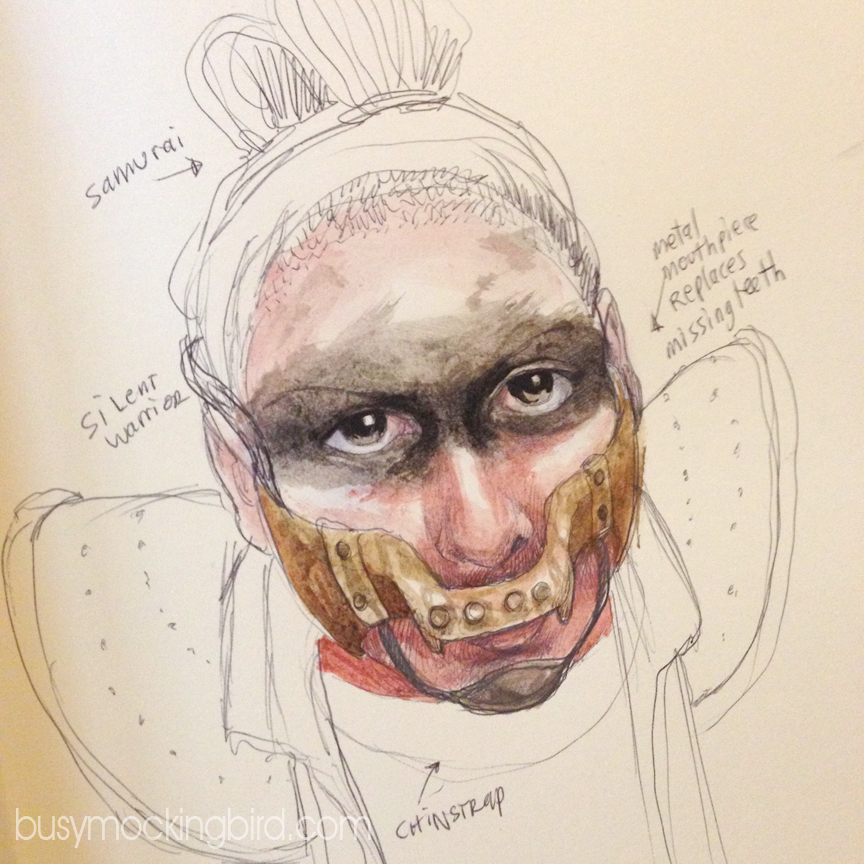 I had fun playing with the idea of what a person might want in a world like that. Some face protection? Something to make them seem more visually intimidating? Masks and clothing were used to that respect in the MM films. Can she be disfigured in some way (like Joe or Vader or Bane) and still command fear and respect?