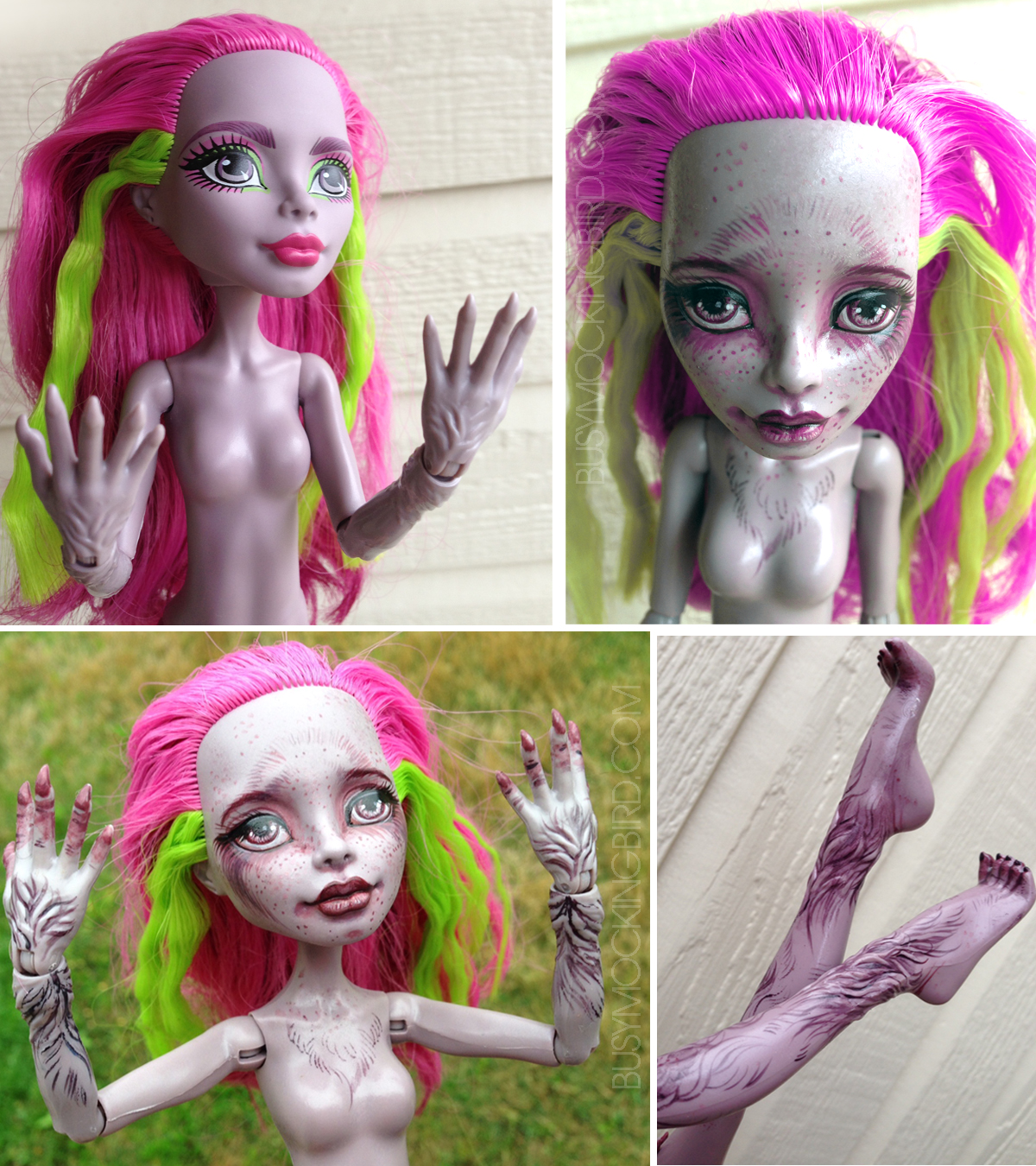 So here’s one of my “grownup” art projects: repainting a Monster High doll!