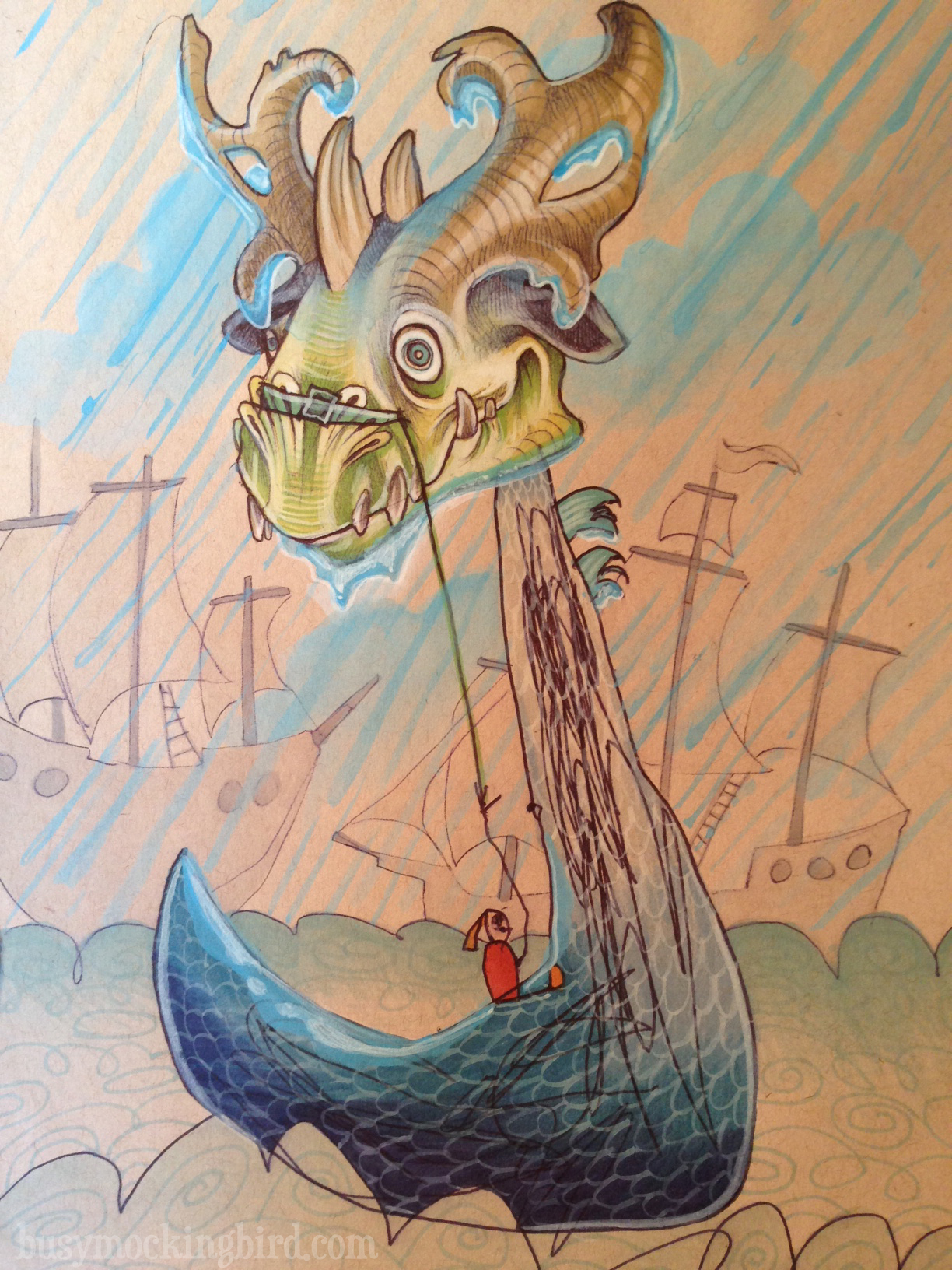 From time to time, people ask if our 4-year old or I get tired of collaborating together when we draw, and so far, the answer has been a resounding “heck NO!” But to change it up a little so that we DON’T, we’ve done a few animals….and every once in awhile, we’ve started throwing some monsters in there.