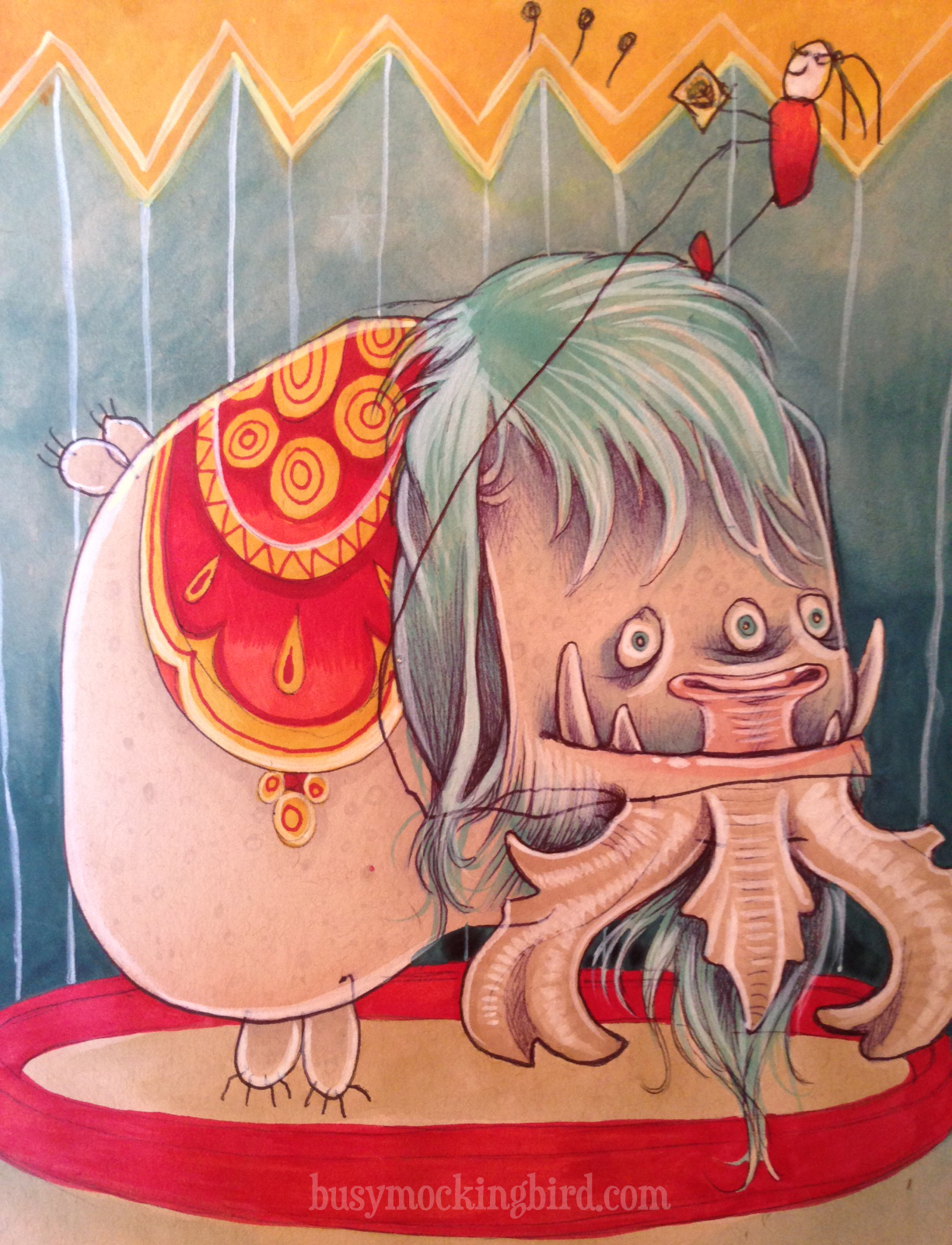 They’re often influenced by her little world, like this creature which came about not long after her first visit to a circus…