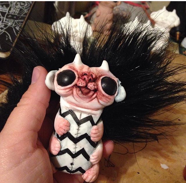 And Myla won’t look at this next one, because it has blood. But blood splatters are spooky and also (I’m sorry) fun to paint. I don’t always draw guts or things that are too gory (that’s not my thing), but ink / red splatters always seem to brighten up a spooky doodle. So if you’re squeamish, maybe scroll past. I just use it as background decor, actually. It’s GoGo Yubari, another Kill Bill alum, who really knows how to wreck junk up.