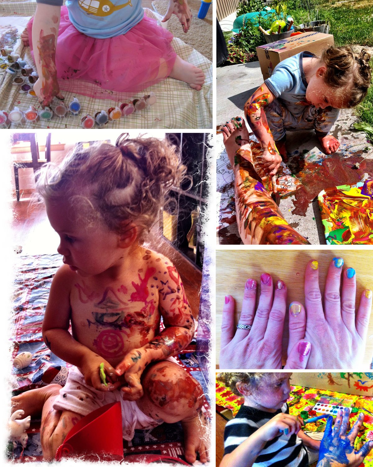 If you’re someone who gets the oogies about messes, there are easy stress-free ways to get messy, and the key is to GET PREPARED! Use washable paints, wear sloppy clothes or an apron. Put down a table cloth and have towels on hand for when you’re done. Have the washer on standby and have a set of clean clothes waiting by a readied bathtub.