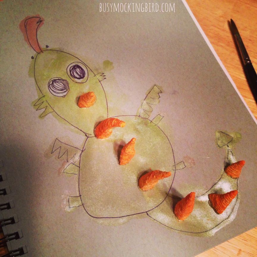 (OH! And if you’d like to see more artsy artwork from both me AND the kiddo, I’m on Instagram now!–@busymockingbird. But more about that later…)