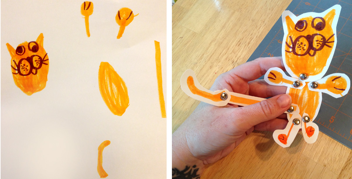 I showed her how to use metal brads once, and she created all the pieces, cut them out, and had me help her put it together…