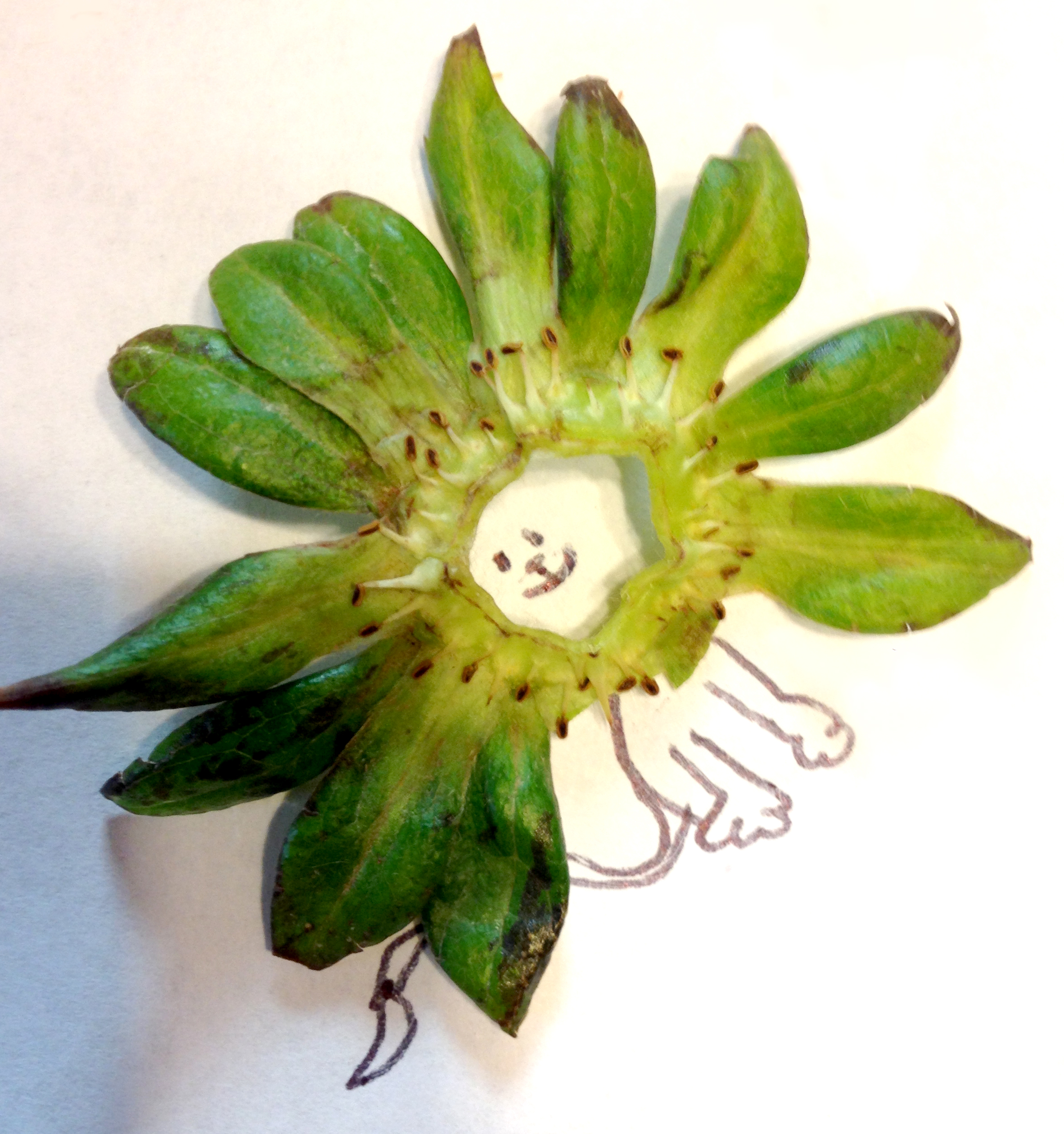 Sometimes, when she’s glued or taped food to the page, I’ve either secretly smuggled it to a temporary holding area (in the garage) before secreting it out to the trashcan (0nly after taking countless photos, of course) to avoid an onslaught of ants, or (as in the case of the Bugle-dragon above) I’ve sprayed it with a multitude of layers of varnish to hopefully keep ants at bay. She’s also glued or taped a birthday candle, bottlecaps, and pieces of plants, creating a little scenery (or what she calls a “project.”)
