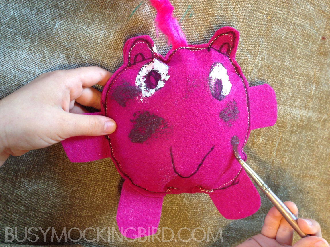 She wanted him to look a little more like the photo, so we got the paints out to color the eyes and spots.