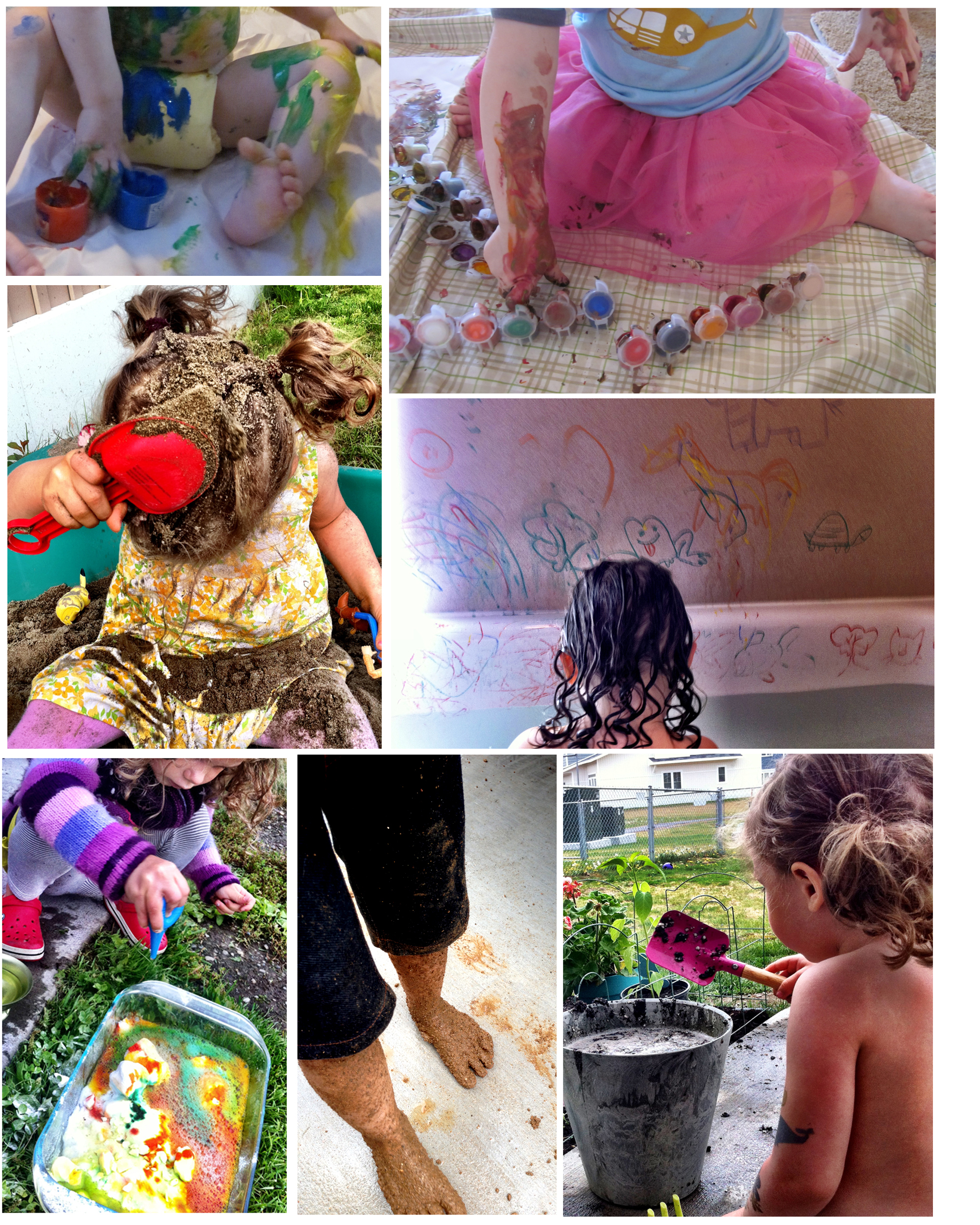 It was difficult at first, ignoring the inner “irk,” but I told my inner voice the same things I’d say about her: “it’s washable. I can take a bath later. It’ll come off.” And the fun we have doing it is always worth the cleaning up. I can’t say that afterward I don’t run immediately to the shower & laundry to clean everything off, but I try my best to wait til we’re all done to internally freak. I can’t say it’s not a challenge sometimes, but I try my best to enjoy it IN THE MOMENT.