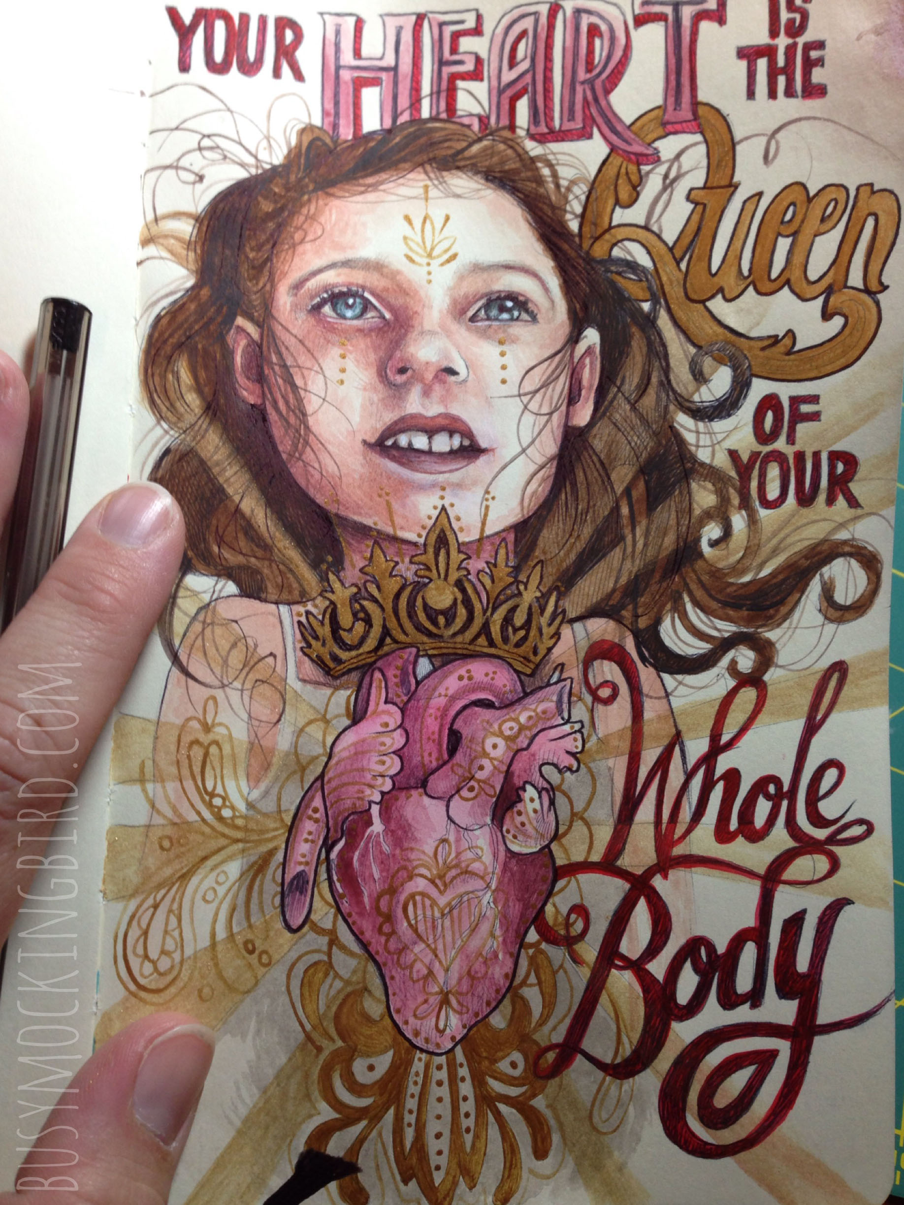 I used to HATE pencil (PTOOIE!). But our art friend Mab Graves sent us her pencils, and I was compelled to try them out with a clean heart…and I found a new respect for graphite! Ballpoint pen will always be my favorite, but I actually came to really appreciate pencil. I didn’t always like the feel, but this was smoother, less gritty, and with the help of Workable Fixative, you can spray it to keep it from smearing, and then when you paint on top of the drawing, it gives it a really interesting look.
