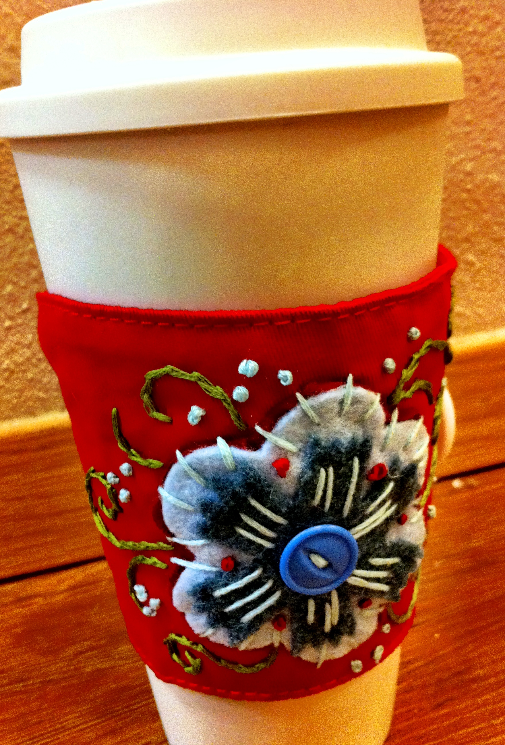 4. Cup Cozy. With some iron-on appliques or your own brand of embroidery work, a quick little cup cozy is a nice touch around the office (at least, I hope my manager thinks so). They even have pre-made base parts in some crafty places. Wrap it around a reuseable coffee cup with a button hook or velcro, and toss in a gift card, or a few packets of tea.