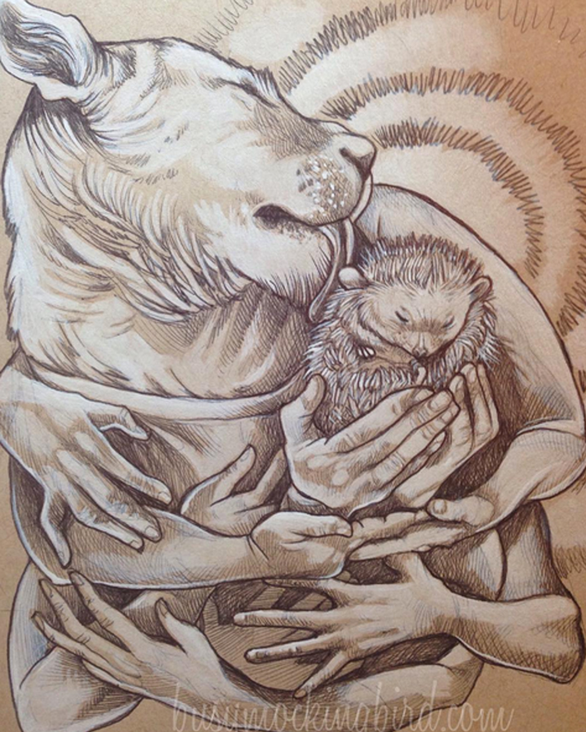 I thought of how much attention we give to this one little tiny thing that has such a HUGE impact on our world, and how all you want to do is love it and hug it, and sometimes it just doesn’t WANT that. I thought of two or three or four grown adults and the hoops they jump through for a crying baby or a restless toddler on an airplane, because they just want to calm and comfort that spiny little thing…but sometimes it HAS to pull away. I thought of a mother lion, and all these very attentive hands doing their best to cuddle this small, prickly, spiny creature….