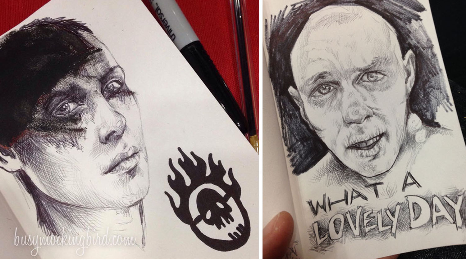 Since we had watched Mad Max: Fury Road in 3D at her house the night before, I drew her a little Furiosa and Nux to kick things off: